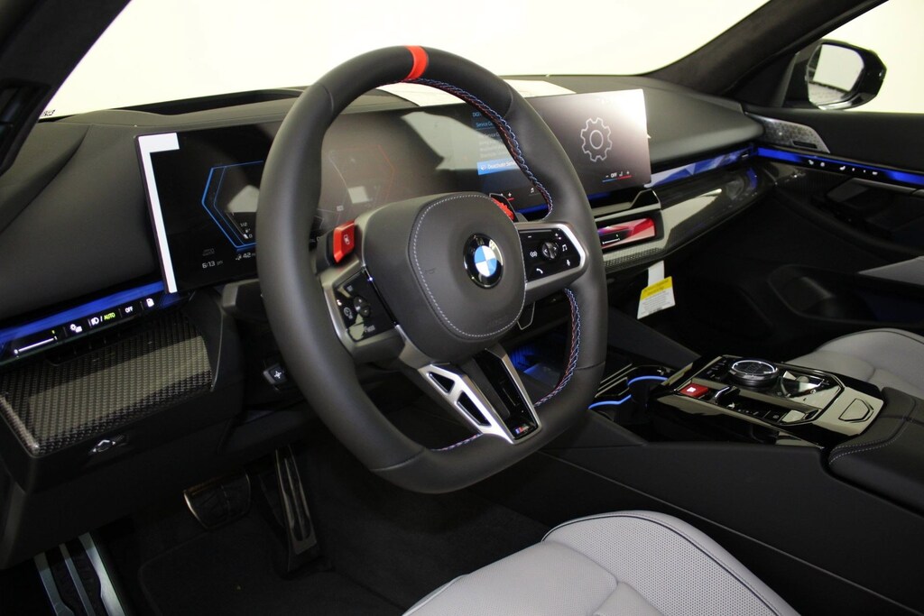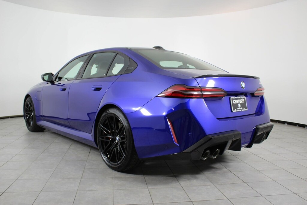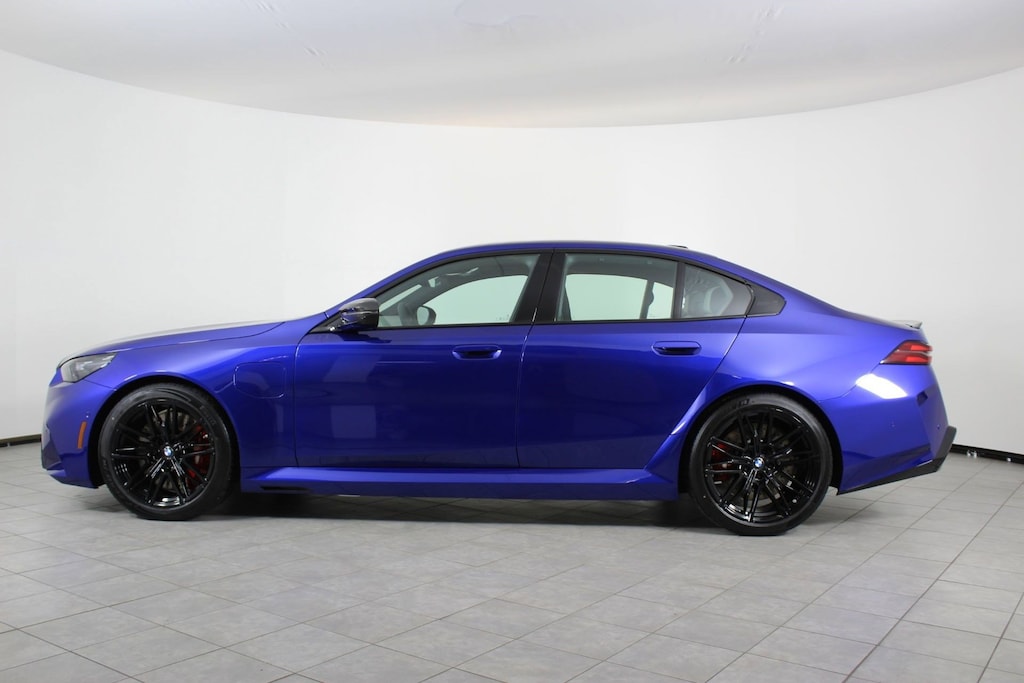 WHEELS: 20" X 10.5" FR & 21" X 11" RR JET BLACK -inc: Style 951M, M dual-spoke, SILVERSTONE/BLACK, MERINO LEATHER UPHOLSTERY, MARINA BAY BLUE METALLIC, M COMPOUND BRAKES W/RED CALIPERS, FRONT VENTILATED SEATS, FRONT & REAR HEATED SEATS, EXECUTIVE PACKAGE -inc: Front Ventilated Seats, Parking View w/3D View (Surround View), Interior Camera, Power Rear Sunshade & Rear Side Window Shades, Front & Rear Heated Seats, BMW Iconic Glow Kidney Grille, Parking Assistant Plus, DRIVING ASSISTANCE PROFESSIONAL PACKAGE -inc: Lane Change Assistant, Driving Assistant Professional, Partial Automated Driving, Hands-free driving up to 40 mph on selected highways, Traffic Jam Assistant, CARBON PACKAGE -inc: M Carbon Exterior Package, Mirror Caps, Carbon Fiber Reinforced Polymer Roof, Spoiler, CARBON FIBER SILVER THREAD HIGH GLOSS TRIM -inc: dark silver accent. This BMW M5 has a dependable Twin Turbo Gas/Electric V-8 4.4 L/268 engine powering this Automatic transmission.