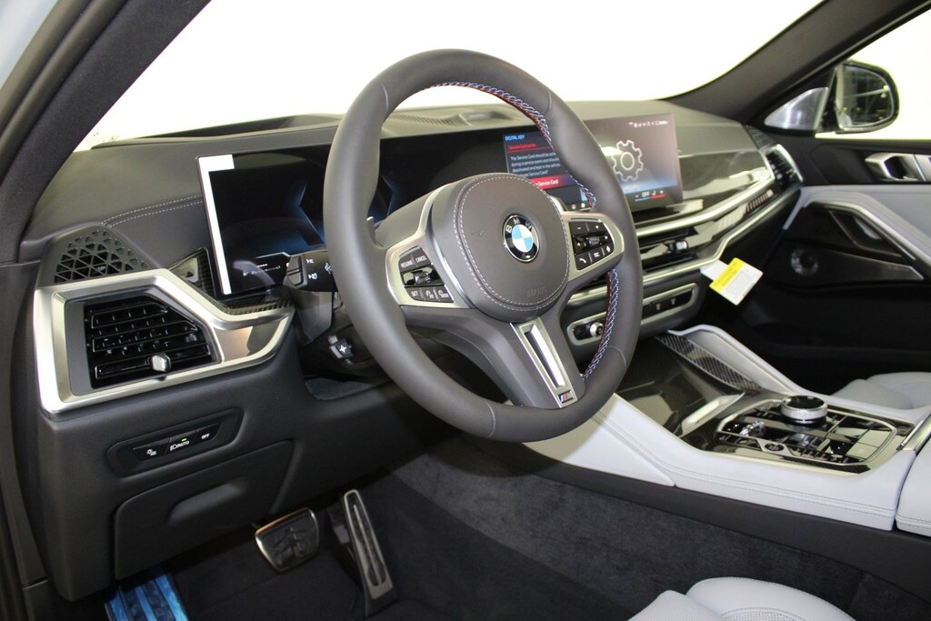 WHEELS: 22" M DUAL-SPOKE BICOLOR (STYLE 742M) -inc: 22" x 9.5" front and 22" x 10.5" rear, Tires: 275/35R22 Fr & 315/30R22 Rr Summer, Staggered, Space-Saver Spare, Increased Top Speed Limiter, SILVERSTONE, SENSAFIN UPHOLSTERY -inc: decor stitching, REAR MANUAL SIDE WINDOW SHADES, PARKING ASSISTANCE PACKAGE -inc: Automatic Park Assistant, Active Park Distance Control, Backup Assistant, Parking View w/3D View (Surround View), Rear View Camera, Parking Assistant Professional, Trailer Assistant, M SPORT PROFESSIONAL PACKAGE -inc: M Sport Brakes w/Red Calipers, M Sport Package Pro, Extended Shadowline Trim, M Shadowline Lights, FRONT & REAR HEATED SEATS, EXECUTIVE PACKAGE -inc: Rear Manual Side Window Shades, Panoramic Sky Lounge LED Roof, Soft-Close Automatic Doors, Glass Controls, DRIVING ASSISTANCE PROFESSIONAL PACKAGE -inc: Lane Change Assistant, Distance Control (ACC) w/Steering Assistant, Driving Assistant Professional, Partial Automated Driving, hands-free driving up to 85mph on selected highways (8 years of service included), Limited Term Highway Assistant, Limited term, CLIMATE COMFORT PACKAGE -inc: 4-Zone Automatic Climate Control, Front & Rear Heated Seats, Heated Front Seats w/Armrests & Steering Wheel, CARBON FIBER TRIM. This BMW X6 has a dependable Twin Turbo Gas/Electric V-8 4.4 L/268 engine powering this Automatic transmission.