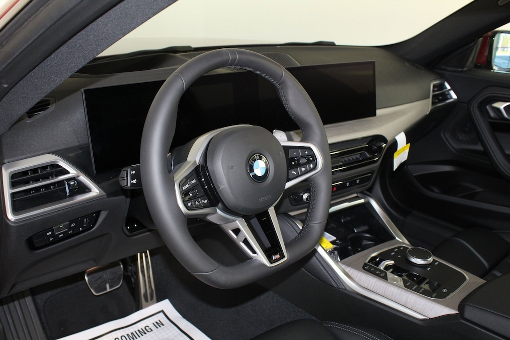 WHEELS: 19" X 8.0" M DUAL-SPOKE JET BLACK -inc: Style 995M, Tires: 225/40R19 All Season, Runflat Tires, VEGAS RED METALLIC, UNIVERSAL GARAGE-DOOR OPENER, PREMIUM PACKAGE -inc: Ambient Lighting, Adaptive Full LED Lights, Comfort Access Keyless Entry, Live Cockpit Pro w/Head-Up Display, Heated Steering Wheel, Moonroof, Automatic High Beams, Universal Garage-Door Opener, PARKING ASSISTANCE PACKAGE -inc: Active Park Distance Control, Drive Recorder, Surround View w/3D View, Rear View Camera, Parking Assistant Plus, M SPORT PROFESSIONAL PACKAGE -inc: M Sport Brakes w/Red Calipers, M Sport Package Pro, sprint function and rear spoiler in black, Extended Shadowline Trim, M Shadowline Lights, M SPORT PACKAGE -inc: Wheels: 18" x 7.5" M Double-Spoke, Style 848M, Bicolor, M Steering Wheel, Rear Spoiler, M Sport Pkg, Variable Sport Steering, M Fine Brushed Aluminum Interior Trim, Without Lines Designation Outside, M Sport Suspension, Aerodynamic Kit, M SPORT BRAKES W/BLUE CALIPERS, HEATED STEERING WHEEL, FINELINE LIGHT OPEN-PORE FINE WOOD TRIM. This BMW 2 Series has a powerful Intercooled Turbo Premium Unleaded I-4 2.0 L/122 engine powering this Automatic transmission.