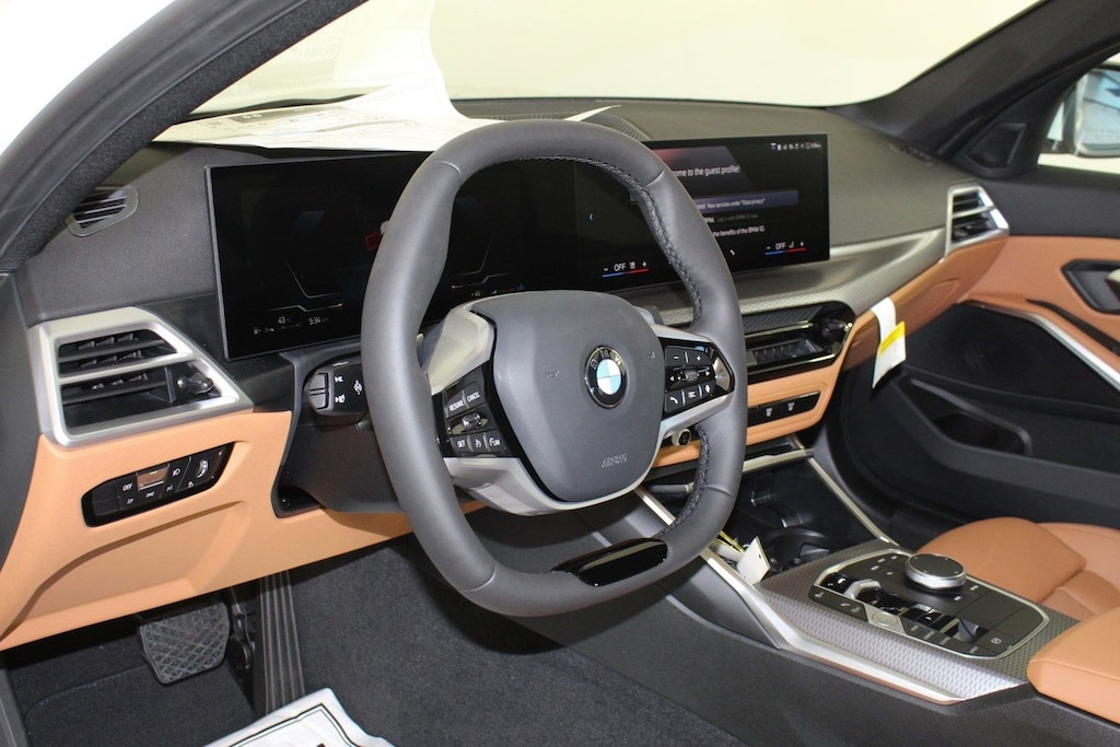WHEELS: 19" X 8" INDIVIDUAL Y-SPOKE BICOLOR -inc: (Style 1038i), Tires: 225/40R19 All Season RunFlat, PARK DISTANCE CONTROL, MINERAL WHITE METALLIC, HEATED STEERING WHEEL, CONVENIENCE PACKAGE -inc: Remote Engine Start, Lane Departure Warning, Comfort Access Keyless Entry, Heated Steering Wheel, Active Driving Assistant, Lane Departure and Lane Change Warning, Frontal Collision Warning w/brake intervention, Cross-Traffic Alert Rear and Speed Limit Info w/manual speed limit assist, among other features, Active Blind Spot Detection, Park Distance Control, Frontal Collision Warning, city collision mitigation, COGNAC, PERFORATED SENSATEC UPHOLSTERY, ALUMINUM RHOMBICLE ANTHRACITE, ACTIVE DRIVING ASSISTANT -inc: Lane Departure and Lane Change Warning, Frontal Collision Warning w/brake intervention, Cross-Traffic Alert Rear and Speed Limit Info w/manual speed limit assist, among other features, Wireless Device Charging, Widescreen Display. This BMW 3 Series has a powerful Intercooled Turbo Gas/Electric I-4 2.0 L/122 engine powering this Automatic transmission.