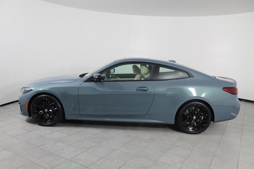 WHEELS: 19" X 8" M DUAL-SPOKE JET BLACK -inc: Style 995M, Tires: 225/40R19 All Season, SHADOWLINE PACKAGE -inc: M Sport Package Pro, Full LED Headlights w/Laserlight Taillights, Extended Shadowline Trim, Black Mirror Caps, M Shadowline Lights, PREMIUM PACKAGE -inc: Remote Engine Start, Power Tailgate, Live Cockpit Pro w/Navi, Heated Steering Wheel, harman/kardon Surround Sound System, M SPORT SUSPENSION, M SPORT PACKAGE -inc: Shadowline Exterior Trim, Aluminum Rhombicle Anthracite Trim, M Steering Wheel, Rear Spoiler, Wheels: 19" x 8" M Dual-Spoke Bicolor, Style 995M, Tires: 225/40R19 All Season, M Sport Package (337), Variable Sport Steering, Without Lines Designation Outside, M Sport Suspension, Aerodynamic Kit, M SPORT BRAKES W/BLUE CALIPERS, HARMAN/KARDON SURROUND SOUND SYSTEM, FINELINE LIGHT OPEN-PORE FINE WOOD TRIM, EXTENDED SHADOWLINE TRIM, CAPE YORK GREEN METALLIC. This BMW 4 Series has a dependable Intercooled Turbo Gas/Electric I-4 2.0 L/122 engine powering this Automatic transmission.