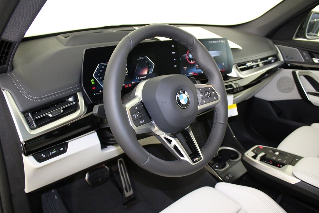 TRANSMISSION: 7-SPEED DUAL CLUTCH W/SHIFT PADDLES, TECHNOLOGY PACKAGE -inc: drive recorder, Remote Engine Start, Live Cockpit Pro, HUD and video augmented reality that overlays real-time navigation directions, arrows, and more live video from the Surround View cameras on the central display, Parking View w/3D View (Surround View), Head-Up Display, Heated Steering Wheel, Panoramic Moonroof, Anti Theft Recorder, Premium Content 1, Parking Assistant Plus, SPORT SEATS, SMOKE WHITE, PERFORATED VEGANZA UPHOLSTERY, M SPORT PACKAGE -inc: Adaptive M Suspension, Transmission: 7-Speed Dual Clutch w/Shift Paddles, M Sport Content, Without Lines Designation Outside, Roof Rails in High-Gloss Shadowline, Sport Seats, Shadowline Exterior Trim, Wheels: 18" x 7.5" M V-Spoke Bi-Color, Style 838M, M Steering Wheel, M Sport Exterior Elements, M Sport Package (337), M Sport Interior Elements, powerboost function, quickshift function and sport plus mode, Aluminum Hexacube Interior Trim II w/Ambient Light, HARMAN/KARDON PREMIUM SOUND SYSTEM, BLACK SAPPHIRE METALLIC, BLACK HIGH GLOSS TRIM W/AMBIENT LIGHT, Wireless Phone Connectivity, Wireless Device Charging. This BMW X1 has a powerful Intercooled Turbo Premium Unleaded I-4 2.0 L/122 engine powering this Automatic transmission.